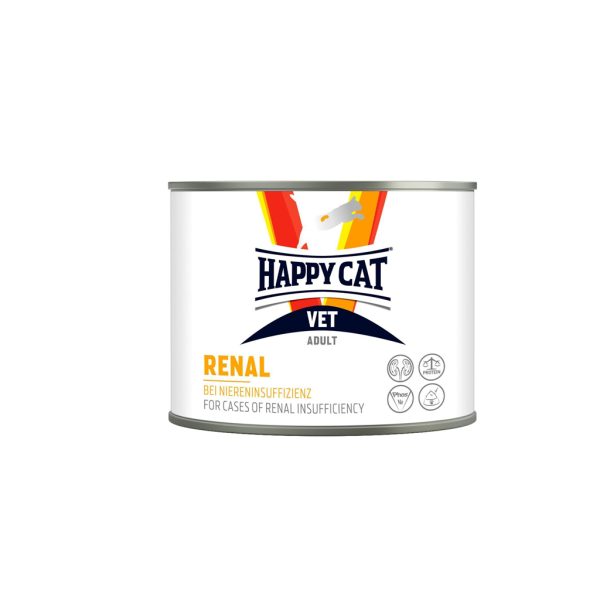 - შერეული კვებისას: გაითვალისწინეთ, 100 გრამი Happy Cat VET Renal-ის სველი საკვები ენერგეტიკულად შეესაბამება დაახლოებით 29 გრამ იმავე ხაზის მშრალ საკვებს.